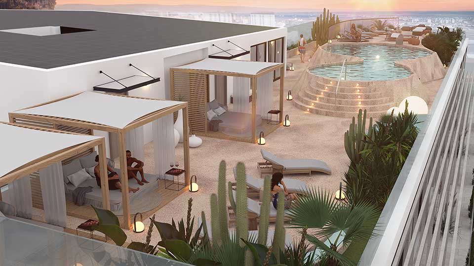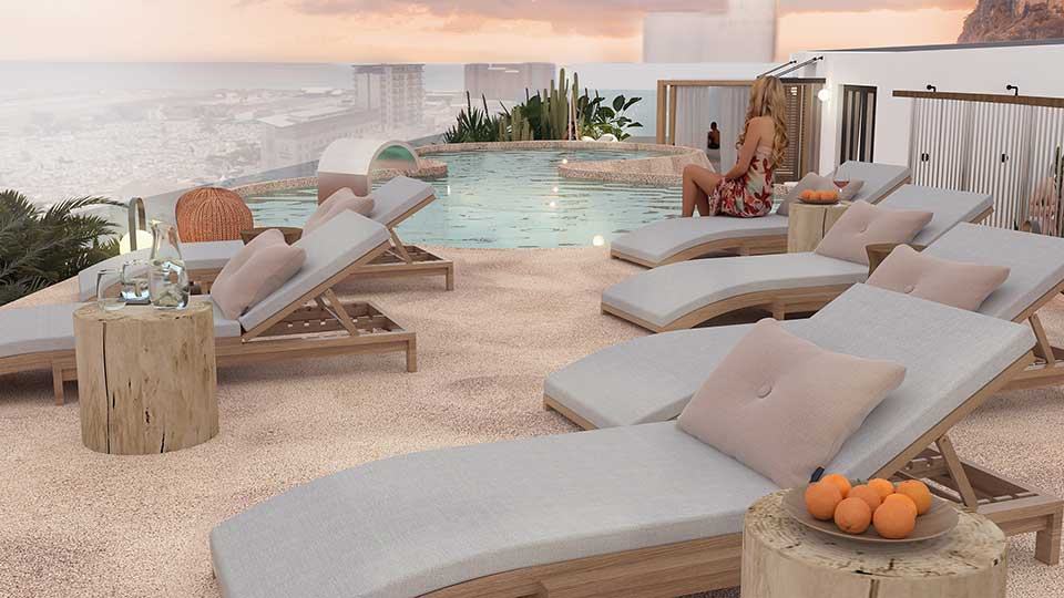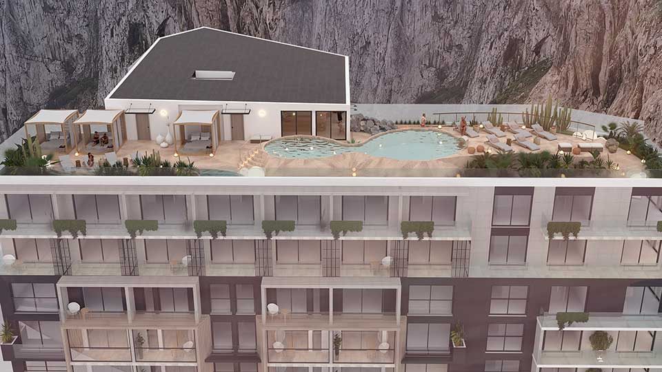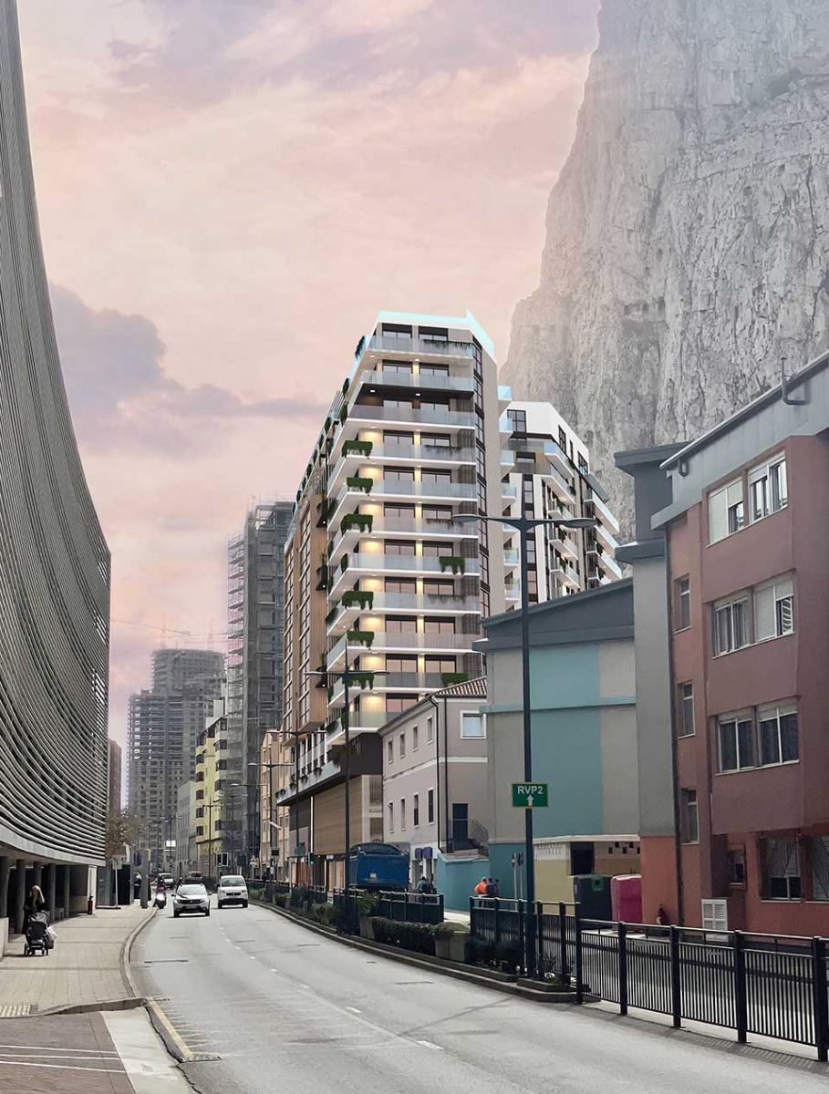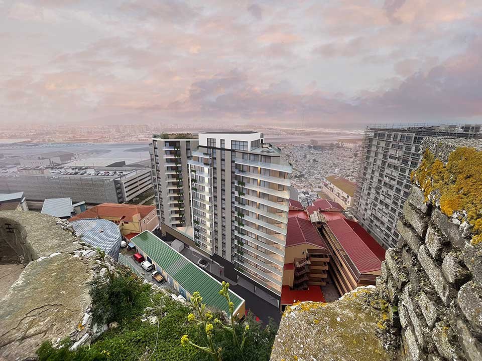 Proposal for a high-rise residential development, to a triangular site facing Devil’s Tower and Forbes Road. The scheme includes ground floor commercial areas, three levels of parking and a mixture of apartments ranging from studios to 4-bedroom. A roof-top pool is also provided.