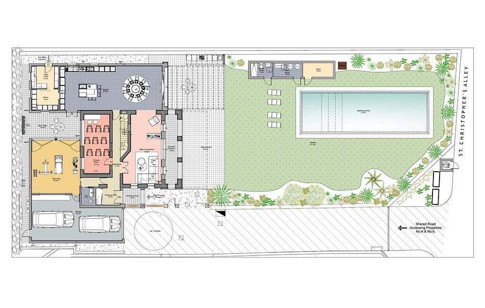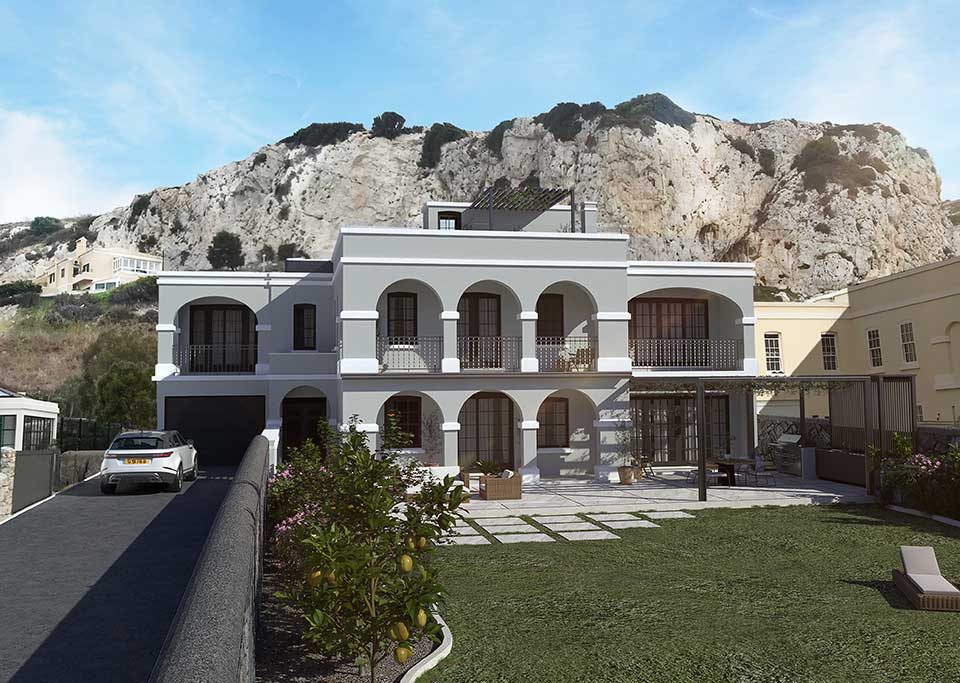 Situated in Europa point the design includes an external pool and garden areas, private garage, gym, and a viewing terrace.