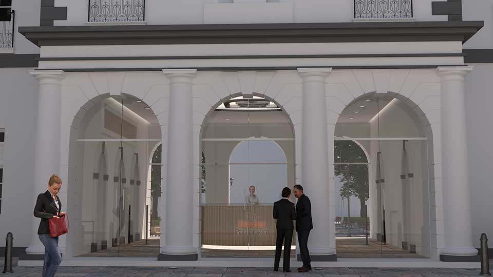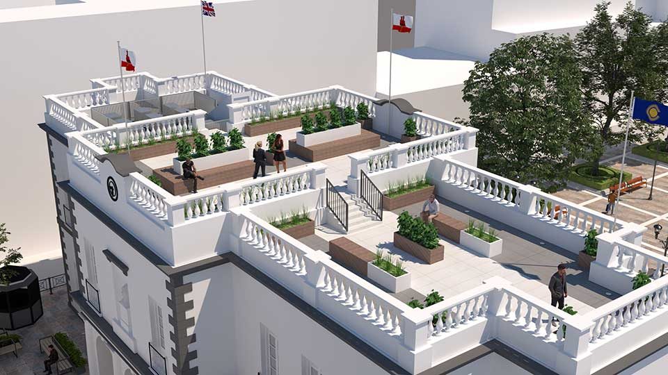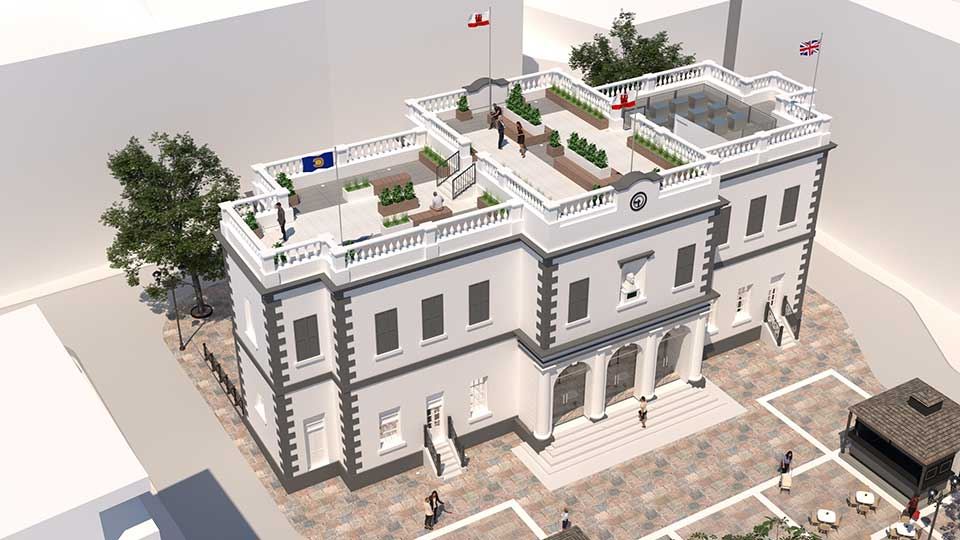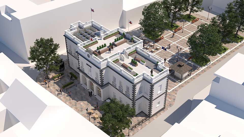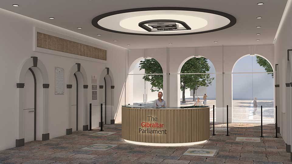 Proposal recently granted planning approval, for the refurbishment and improvements to the Gibraltar Parliament building at John Macintosh Square. This includes the introduction of a new internal lift, beautification of the façade and roofscape as well as the creation of a new entrance foyer. There are also planned internal rearrangements to provide increased office and welfare facilities, as well as new meeting rooms.