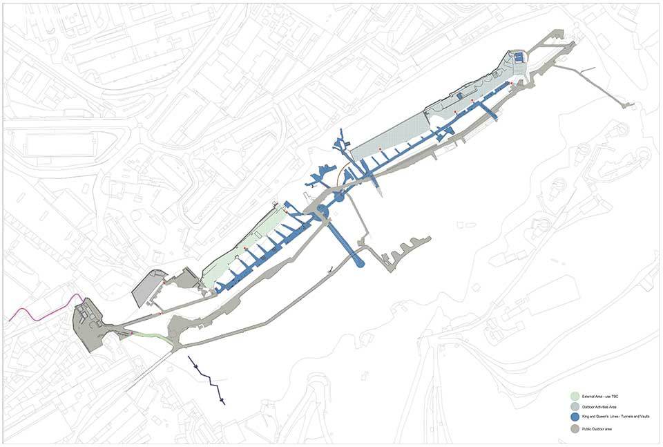 The scheme includes the introduction of new recreational uses, interpretation – both to the extensive network of internal tunnels running along the King’s and Queen’s Lines, as well as the external areas connected to these.
