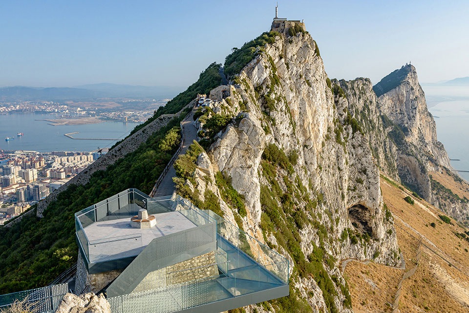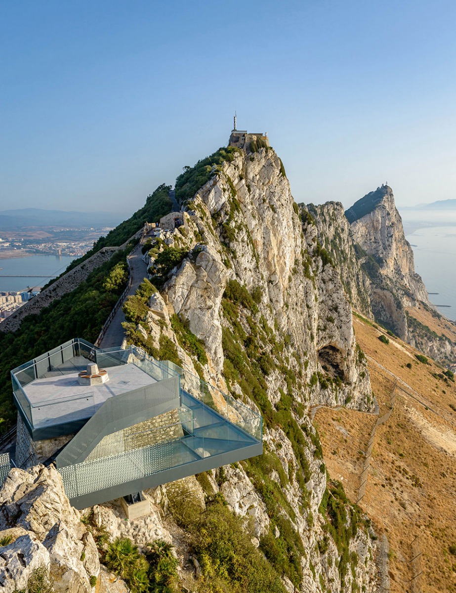 Completed project in the Gibraltar Nature Reserve, for the design and construction of a cantilevered walkway wrapped around a historic former military platform which served as a base for anti-aircraft guns during WWII. The structure is perched above the steeply dropping terrain and anchored to the rock – ensuring it withstands not only the imposed load of visitors above but also the considerable wind speeds of over 150 km/h which are generated over the ridge of the rock.